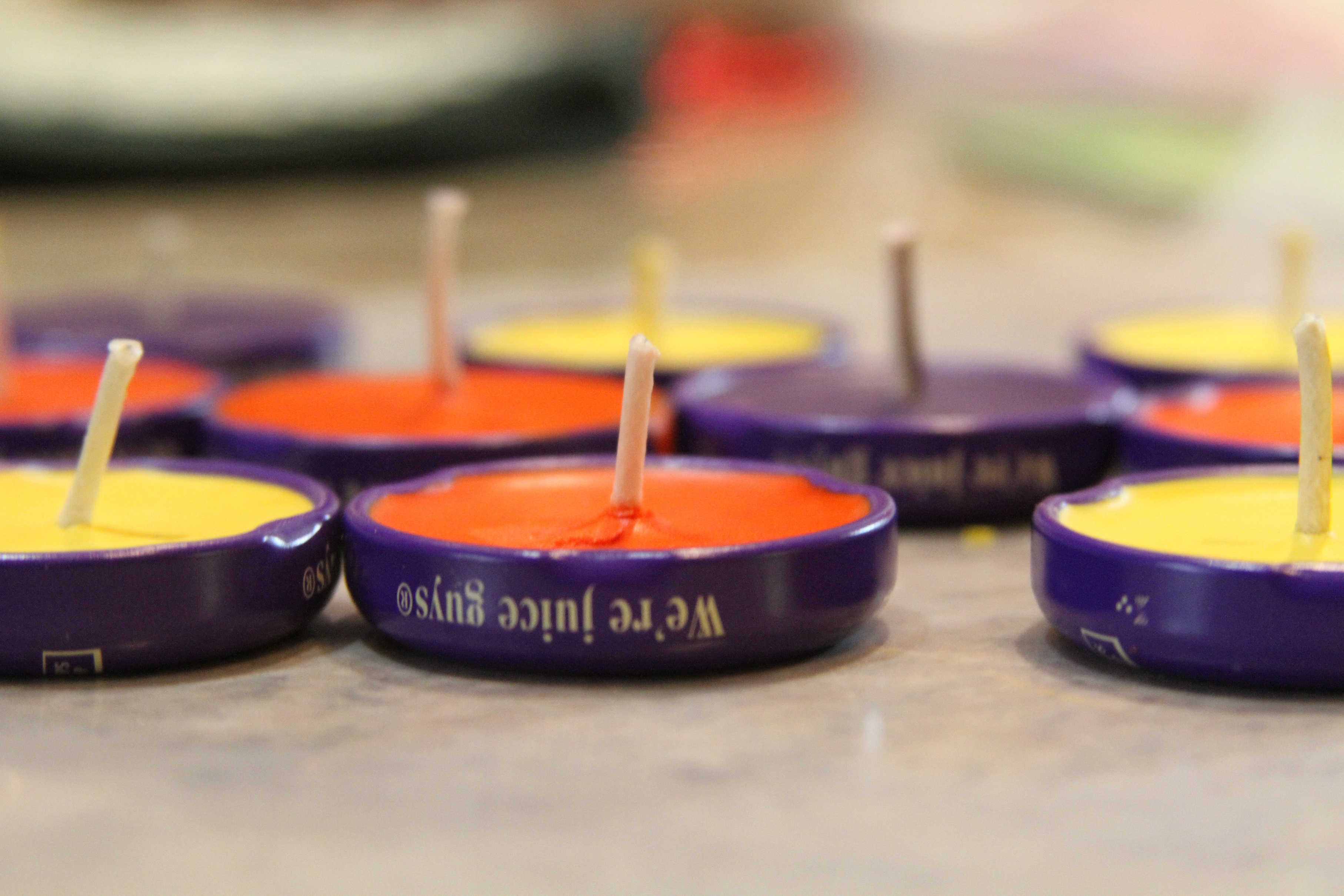 Place a sheet of waxed paper on the counter (to guard against spills) and put your Nantucket Nectars caps on top. Stand up the wicks in the lids, covering the island fun facts. (Sad, I know.) Carefully pour the melted wax to fill each lid. Let the wax harden and dry for 1-2 hours. Snip the wick to the desired length, and your tea lights are good to go.